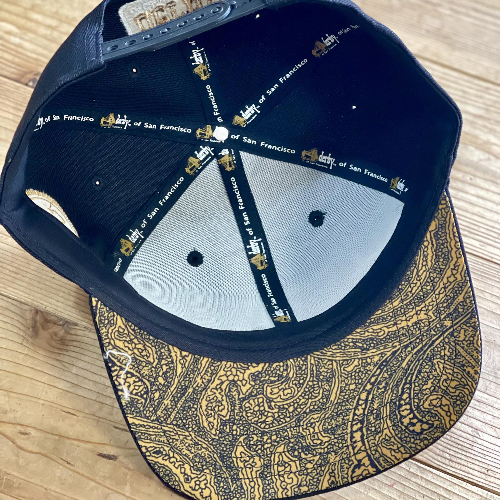 | キャプション | フラップの裏に特徴的なゴールドペイズリーがあしらわれたダービーオブサンフランシスコのスナットパックキャップです。刺繍ワッペンがかっこいいです。 |